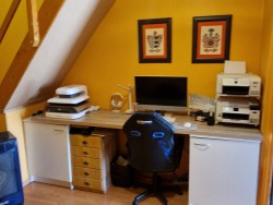 Elle se compose en rez-de-chaussée d'un vaste séjour/salle à manger, d'un belle cuisine séparée, de deux grandes chambres avec placards, d'une salle de bains et d'un WC. En prolongement de la cuisine, vous accéderez à un bureau, une buanderie et un atelier desservant le jardin. A l'étage, nous trouvons deux grandes chambres avec placards égalemennt.