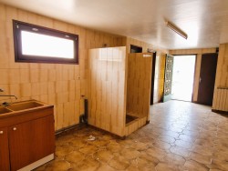 Maison composée au rez de chaussée d'un garage, d'environ 42 m2, d'une pièce avec wc et salle d'eau et d'une autre pièce attenante, chaufferie.