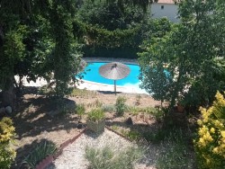 Sur près de 3 000 m2 de terrain arboré et entretenu, cette maison avec grande piscine chauffée (10 x 5 m) offre une vue panoramique exceptionnelle sur le village médiéval et les montagnes environnantes.
