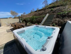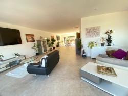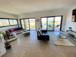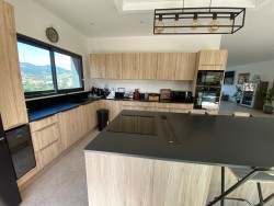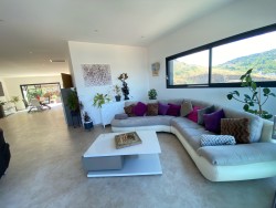 Le vaste séjour lumineux de 110 m2, pensé pour créer des espaces cosy et variés, accueille une cuisine américaine haut de gamme avec îlot central. L’ensemble s’ouvre sur une terrasse avec jacuzzi et coin barbecue, offrant une vue dominante exceptionnelle.