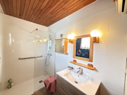Côté nuit, vous trouverez deux chambres, dont une disposant de sa propre salle d’eau. Un WC séparé complète l’espace intérieur.